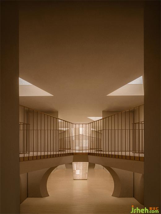 The arch door at the facade takes the advantage of the reflection of the light on the ground, enhancing the three-dimensional texture of the art coating. Six groups of eccentric circles are layered and stacked. Light circulating both inside and outside, thus, a graceful and dynamic aesthetic effect is created.
