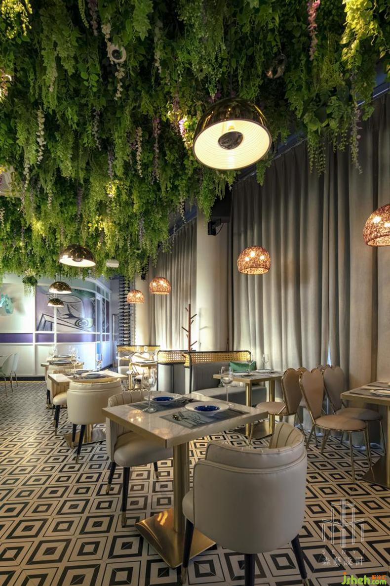 賓客來(lái)訪,如同瓊林玉樹,互相照曜,陽(yáng)光和頂燈,渙散成光斑光束,在黑白相間的格子地板上,與賓客一同躍動(dòng)。一幅幅現(xiàn)代抽象藝術(shù)的畫作,搭配叢林垂落的屋頂,仿佛置身于藝術(shù)境堂,格調(diào)華麗時(shí)尚;又若與自然相隨,充滿靈動(dòng)與清馨,因此愉悅之心自油然而生。