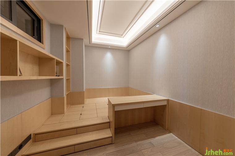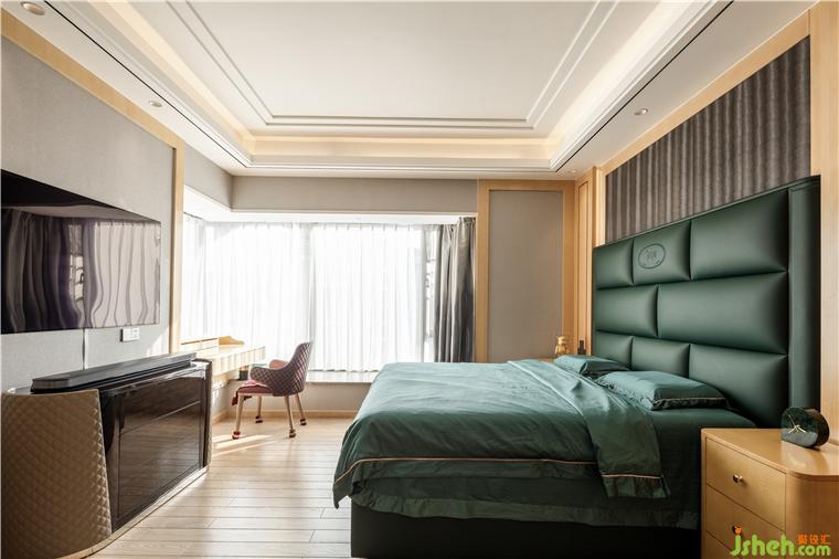 根據(jù)家庭成員的年齡、性格和審美喜好,設(shè)計師融合了多元化材料、幾何造型、線條節(jié)奏,呈現(xiàn)了一個端莊嫻靜的長輩房空間。