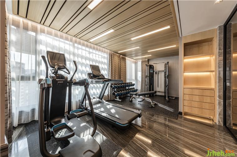 頂層復(fù)式設(shè)計三樓休閑功能廳除了起居室、茶室,桑拿房、專業(yè)健身房,專業(yè)級的私人影院滿足家庭成員的各個需求,同時豐富生活的日常,引導(dǎo)健康、溫暖、格調(diào)的生活場景。