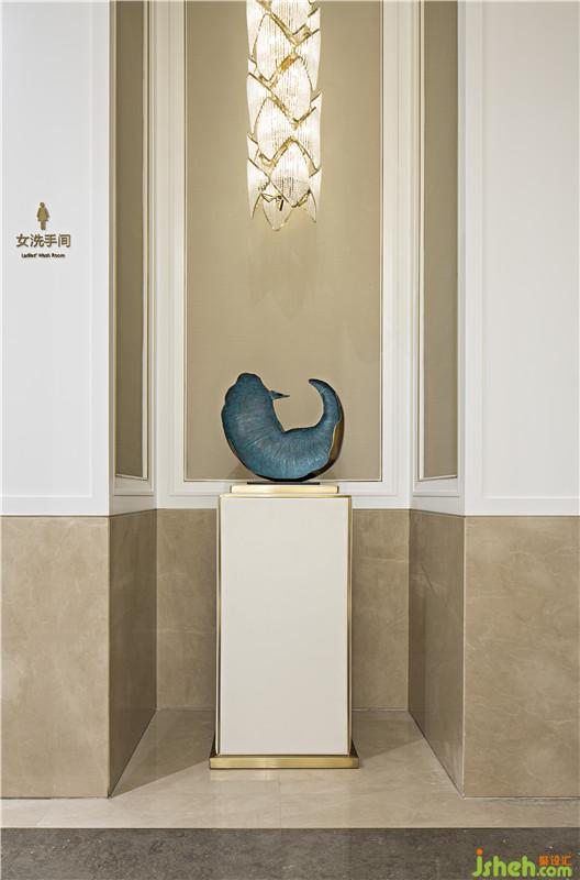 家具、面料的選擇在工藝和環(huán)保上都及其講究,有繁有簡,造型優(yōu)美,以暖色調(diào)為主由淺至深層次豐富;不銹鋼搭配玻璃和石材,襯托出華貴的氣質;布藝選料注重手感粗磨,并選以少許ART DECO放射狀元素圖案進行搭配,契合硬裝主題,共同構造獨特的物象之美。