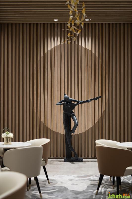 空間視覺(jué)上以具有流暢線(xiàn)條感的藝術(shù)曲線(xiàn)展現(xiàn),糅合延伸聯(lián)想聽(tīng)覺(jué)的絲弦藝術(shù)品,與項(xiàng)目建筑外觀的大氣弧形輪廓線(xiàn)條相呼應(yīng),展現(xiàn)建筑生命力生生不息的豐碩美好,以積極正能量樂(lè)享生活的美好訴求。