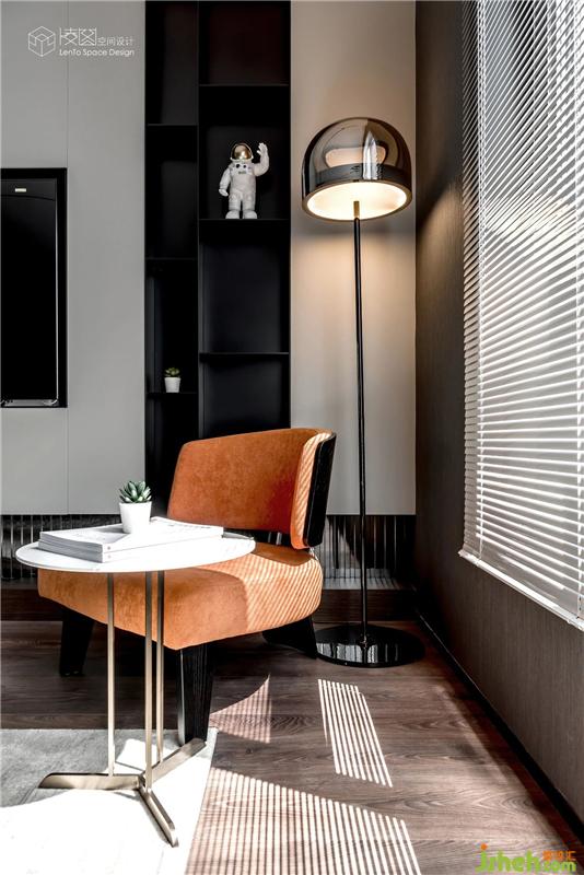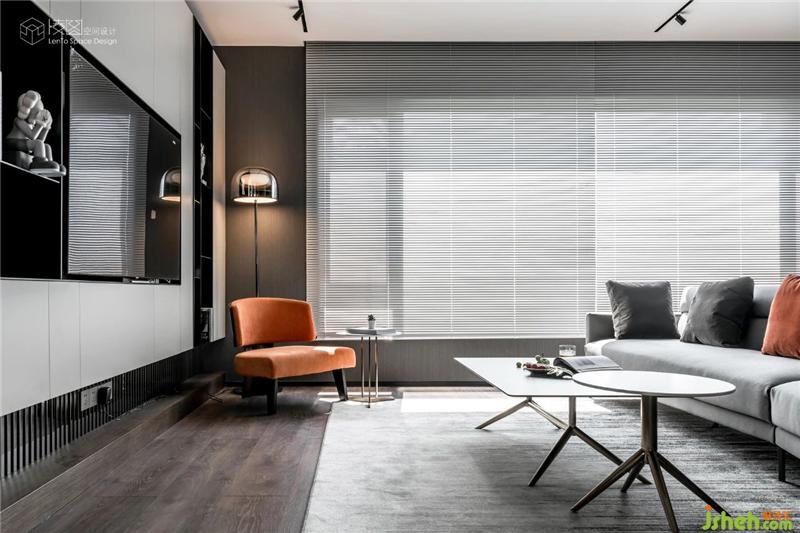 黑、白、灰、橙四種不同色調(diào),冷暖錯落,層次分明,讓空間色彩更加立體豐富。