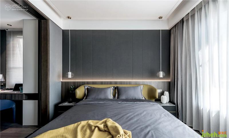 主臥室作為一個家的基調(diào),灰色和黃色交織出的是細膩雅致天津裝修設(shè)計。