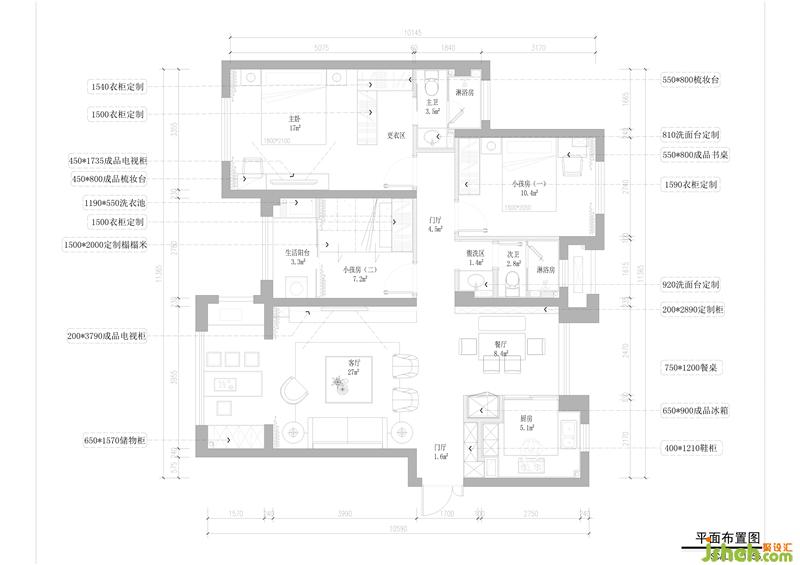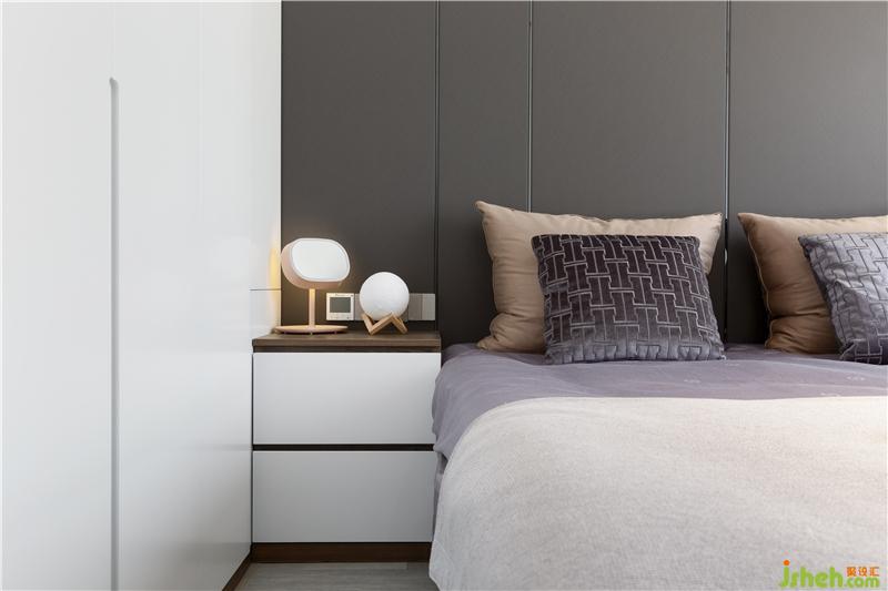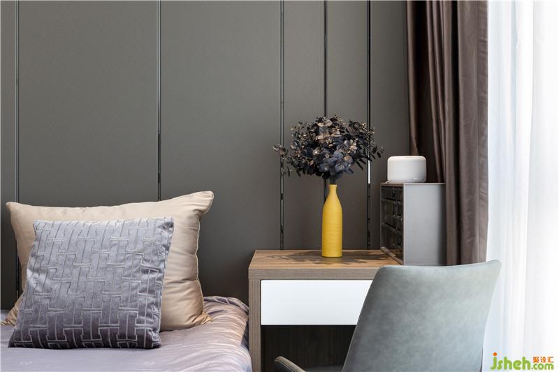 PS:本案整木整體定制無靠背帶儲藏功能床鋪、撞色梳妝臺、床頭柜及書桌、整體隱形拉手、外蓋柜門及抽屜,有效提升整體感。裝修公司