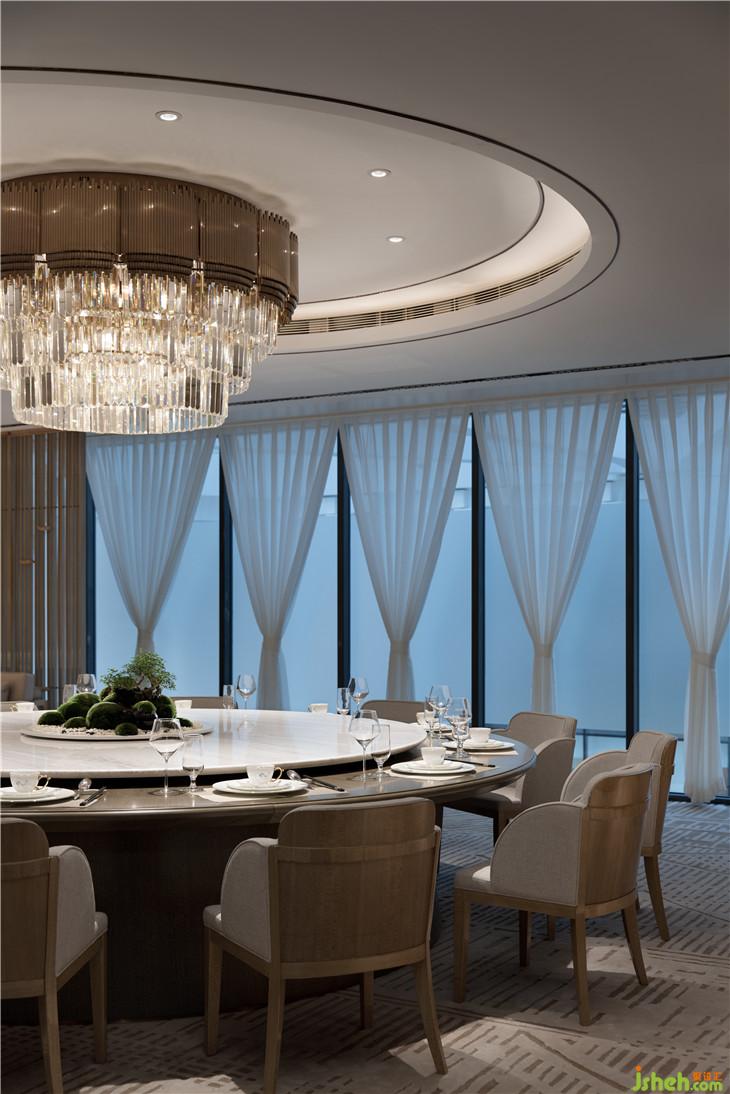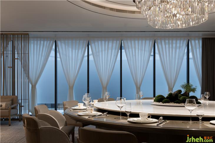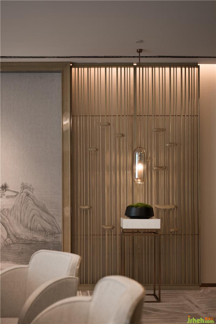 屏風(fēng)的錯(cuò)落隨意的布置尤如海面上的漁船及風(fēng)帆,寓意乘勢揚(yáng)帆而上鑄就輝煌。吊燈的元素來自項(xiàng)目的地理位置引發(fā)的設(shè)計(jì)構(gòu)思,通過以現(xiàn)代復(fù)合材料進(jìn)行藝術(shù)手法塑造成波浪,追求水波蕩漾的自然感,金屬質(zhì)感邊框做成波光粼粼的點(diǎn)綴。展現(xiàn)設(shè)計(jì)者對自然及力量的一種追求。