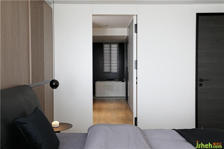 衛(wèi)生間和衣帽間摒棄傳統(tǒng)房門隔斷,做了一個(gè)綜合的開放綜合功能區(qū)域,龍巖家裝設(shè)計(jì)簡約的線條和勞倫黑金的巖板造就潔凈的環(huán)境,細(xì)節(jié)品味相得益彰。