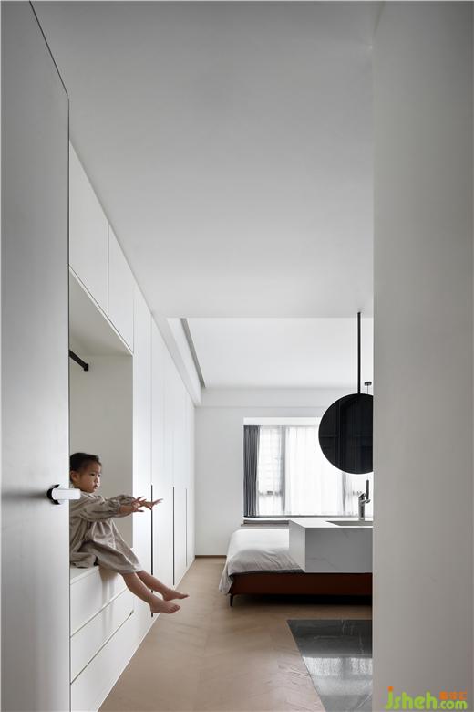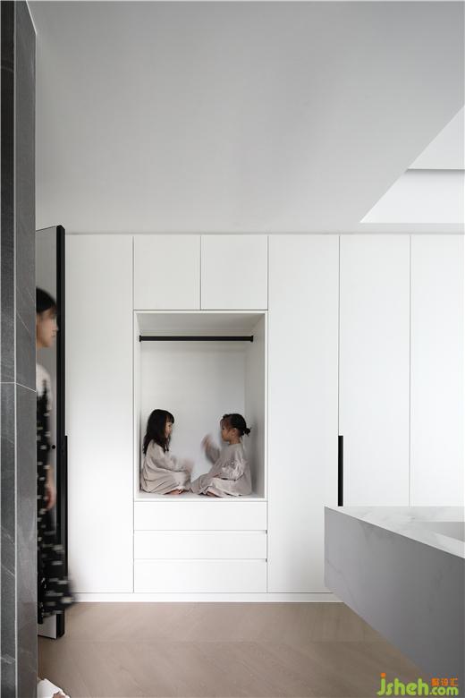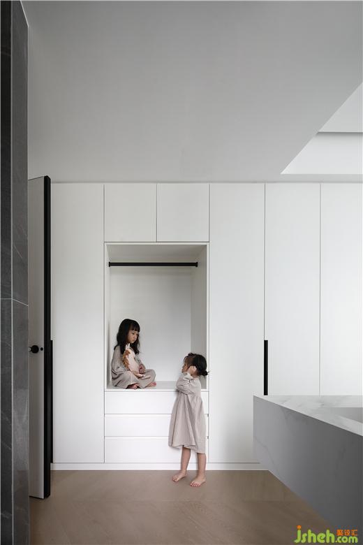 在空間的主動線上,祛除非必要的裝飾、隔墻,化零為整,使空間開朗舒適,擴大留白部分,均勻分布,龍巖家裝設(shè)計讓光線和視線自由流動。本案的入戶視角,利用隱框門、白色定制柜體,弱化入戶過道,使餐廳實現(xiàn)最大化,并充分利用空間的互補性,用現(xiàn)代手法使餐廳實現(xiàn)了多功能化,既是餐區(qū)又是兒童的書桌區(qū),其樂融融,悠然自得。退一步恬靜優(yōu)雅,進一步溫柔浪漫。