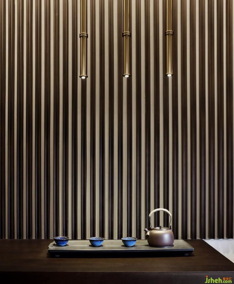 “觀水有術(shù),必觀其瀾”依山傍水,素有“文化之鄉(xiāng)”觀瀾版畫(huà)基地享譽(yù)海內(nèi)外。人文特色和文化底蘊(yùn)是鵬城一角最真實(shí)的寫(xiě)照。一禪一松,手法流露出“中正平和”的中方哲學(xué)思想?!吧菅拧崩渖{(diào),洋溢出賓客尊貴的格局,同時(shí)彰顯出其主人心中獨(dú)特待客之道。室內(nèi)設(shè)計(jì)師以“淡酒邀明月,香茶迎故人”的心境吸取靈感,冷峻木色與筆挺點(diǎn)面,簡(jiǎn)中提精的震撼人心。