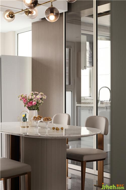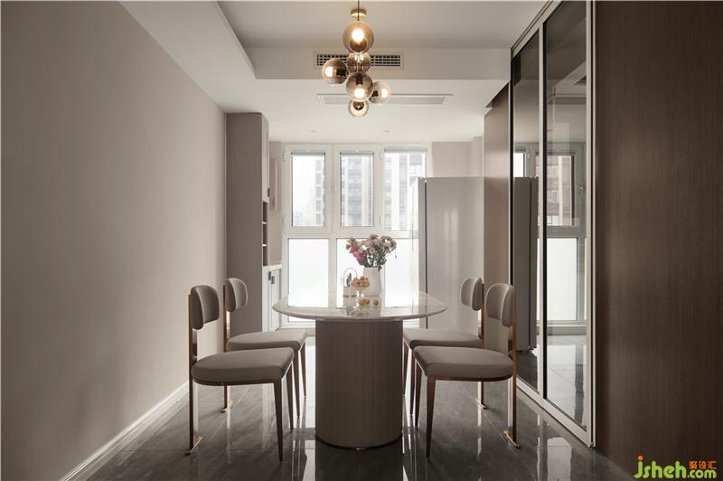 采用外掛移門,增加餐廳和廚房之間的通透,釋放空間;