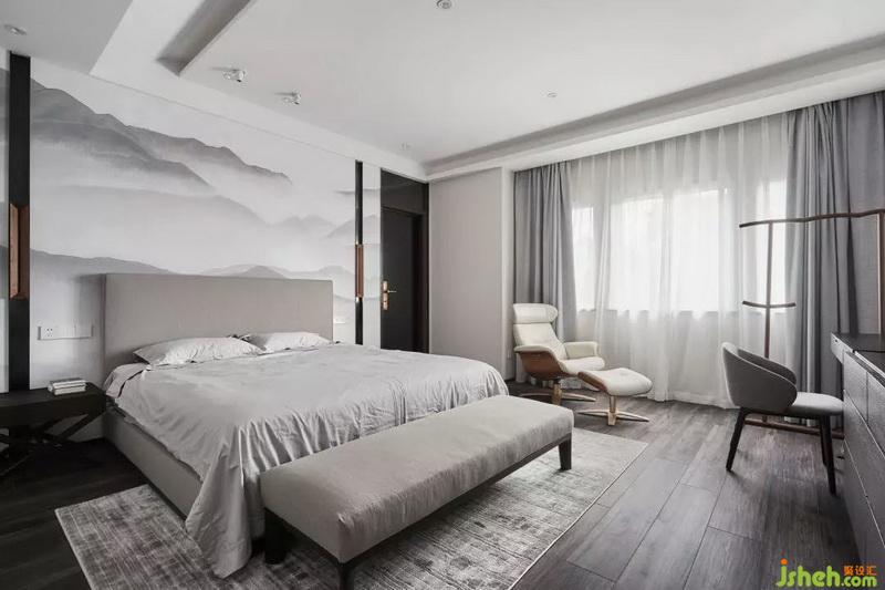 主臥的山水壁畫(huà)是點(diǎn)睛之筆,帶著一種清風(fēng)拂面的氣質(zhì)。