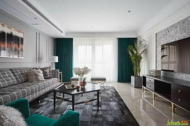 設(shè)計(jì)公司利用靠墻的千鳥格沙發(fā)與別具一格的線條、裝飾畫,沒有一分一毫的多余,在千變?nèi)f化的組合中散發(fā)出時(shí)尚優(yōu)雅。