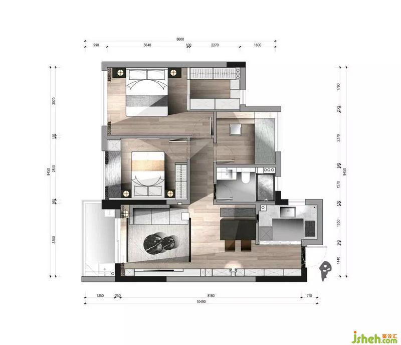 次臥同樣極具時(shí)尚感,軟裝與硬裝的搭配被設(shè)計(jì)師拿捏的非常得當(dāng),畫面非常和諧。