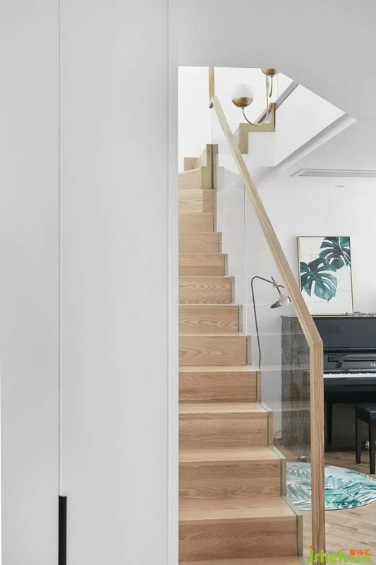 樓梯空間,相對而言,是一個單獨(dú)的空間。保留通透性的前提下,樓梯欄桿設(shè)計公司設(shè)計為清玻搭配實木扶手,樓梯下也做了一些小心思,既能滿足小儲物功能,也能滿足業(yè)主家兩個小寶貝的閱讀區(qū)域、學(xué)習(xí)區(qū)域。而樓梯側(cè)面的銅片處理,使樓梯的整體質(zhì)感又上升了一個等級,拾級而上。