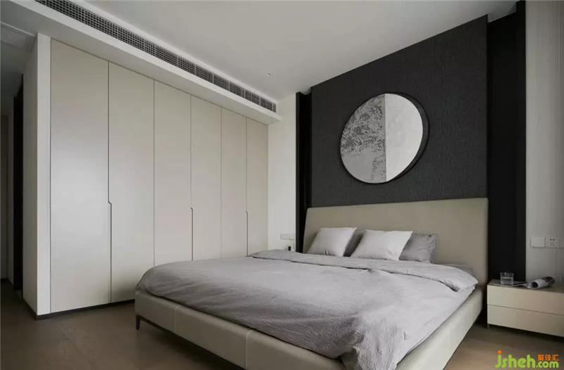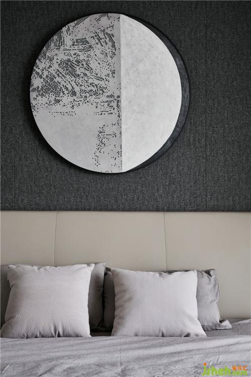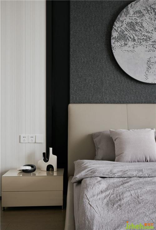 主臥室意式輕奢的簡(jiǎn)練語(yǔ)言在大圓弧半落地窗的映射下,更彰顯大氣風(fēng)范,灰色木紋裝飾墻面搭配金屬邊柜給人以時(shí)尚之感,低調(diào)的氛圍中彰顯沉穩(wěn)、活力的氛圍特色。