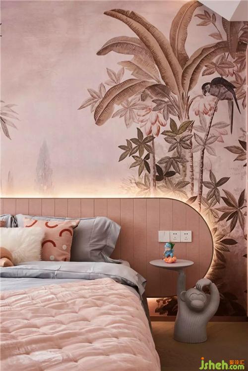 尚在兒童時(shí)期的小女兒房,設(shè)計(jì)師用了大面的粉色壁畫和充滿童趣的配飾擺件,給小朋友營(yíng)造一個(gè)充滿浪漫氣息的公主房。