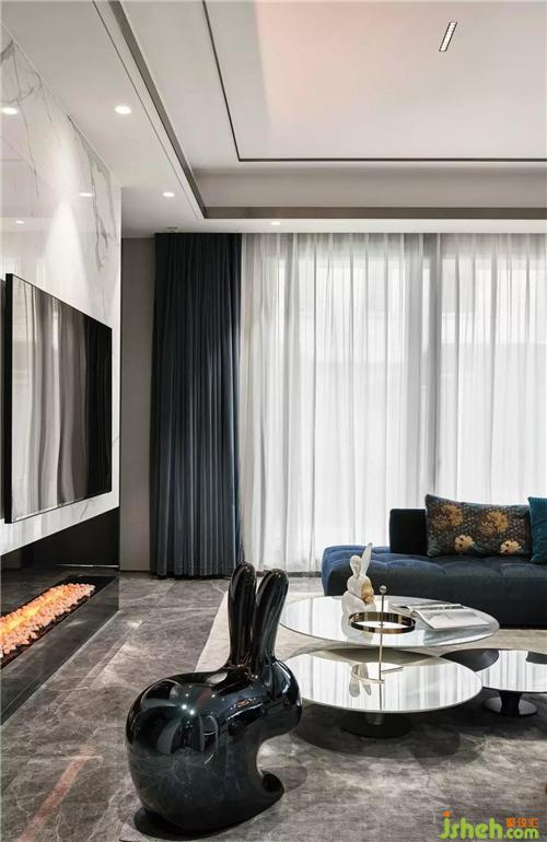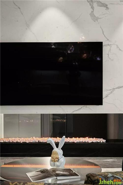 懸浮的電視墻設(shè)計,增加了空間的視覺延續(xù)性;真火壁爐的星火光芒、羅奇堡的沙發(fā)和茶幾、稀奇藝術(shù)品的擺件,整個空間優(yōu)雅時尚,彰顯著主人對生活的態(tài)度。