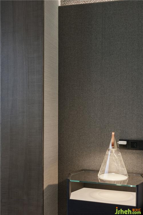 二層主臥內(nèi)不同質(zhì)感材質(zhì)混搭刻畫出肌理、明暗的變化,玻璃材質(zhì)的柜門,通過唯美的規(guī)劃分割,完美實(shí)現(xiàn)功能與美感的結(jié)合,盎然有趣杭州裝修設(shè)計(jì)。