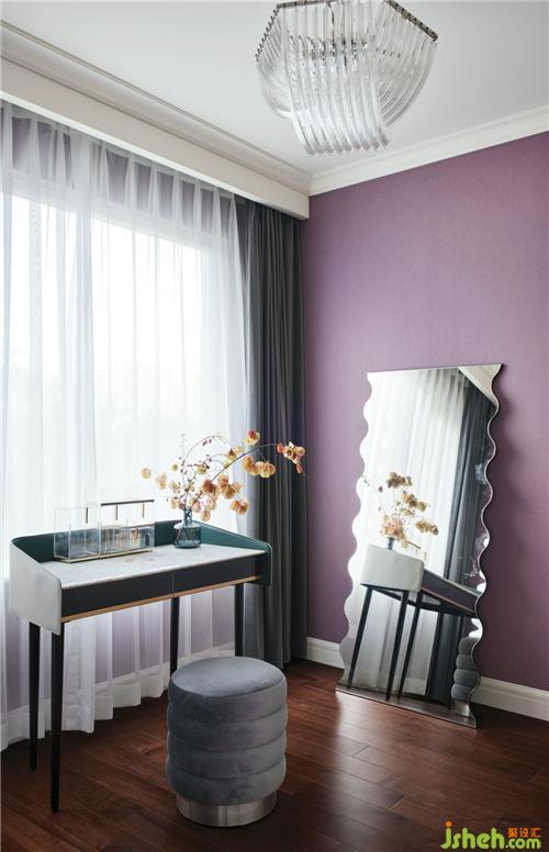 香芋紫的墻面充滿了女性的柔美典雅,古典的梳妝臺,景美的小花,點點滴滴都在敘述這個家女主人最美的姿態(tài)。