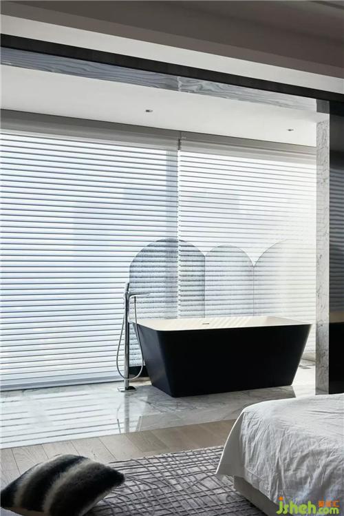 陽(yáng)光濾過(guò)香格里拉簾,透射在浴缸里光影斑駁,白色是特別有意思的光的載體,只有生活在此,杭州裝修公司才能感受到光所帶來(lái)的色彩變化。