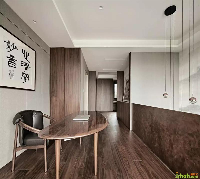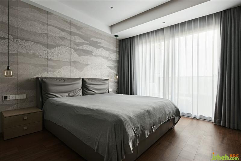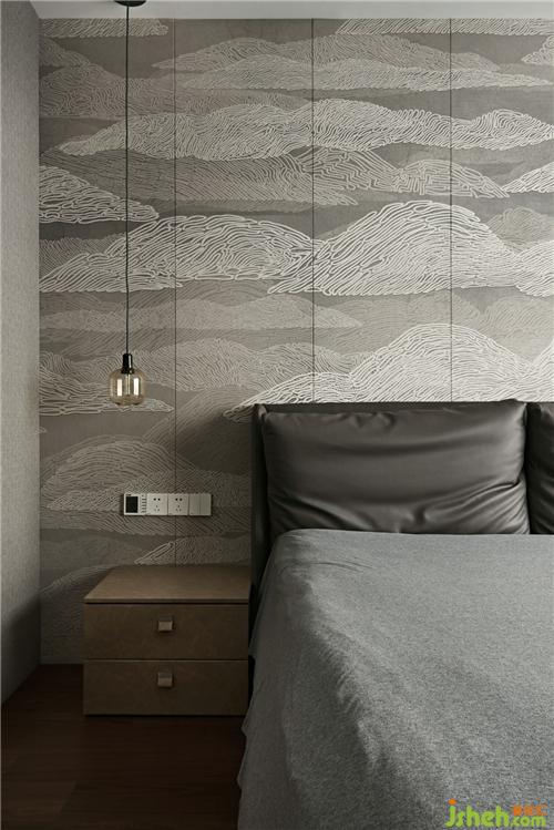 主臥室延續(xù)禪意風(fēng)格,抽象的連綿起伏的山脈,在飄渺的云煙中,猶如是幾筆淡墨,渲染了臥室寧?kù)o舒緩的睡眠氛圍。