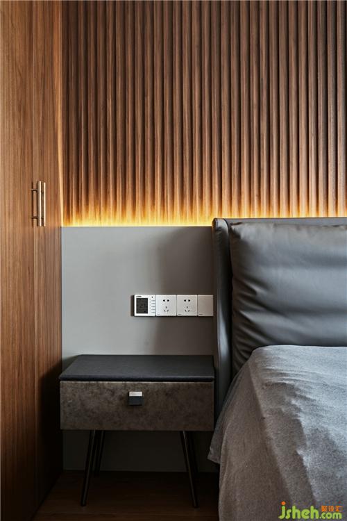 老人房胡桃木的床背景,在燈光的映射下,溫暖祥和,陽(yáng)光透過(guò)窗紗,杭州室內(nèi)設(shè)計(jì)師在這柔和光線的籠罩中,自在放松。