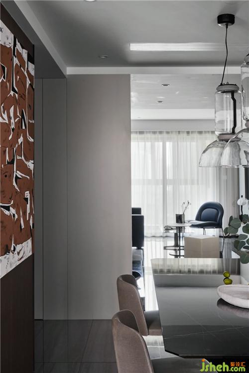 改造后的餐廳空間規(guī)整,南北互通的陽(yáng)光和米色墻面使空間柔和有加,水晶玻璃的餐吊燈和走心的小配飾寓意了主人的美好生活,墻面的抽象裝飾畫(huà),更增添了空間的趣味性。