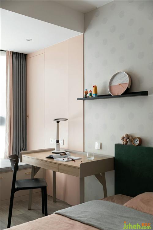 女孩房對比色的運用,可鹽可甜,符合女孩子豆蔻年華的情懷,充滿朝氣、青春爛漫。