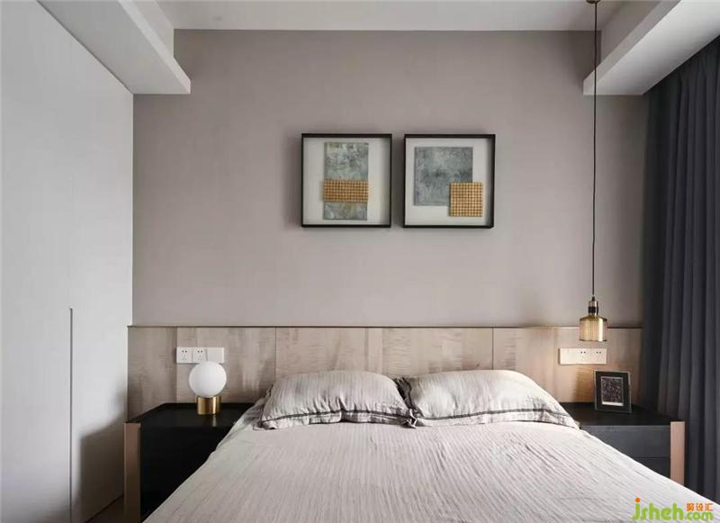 次臥室暖咖色溫馨細(xì)膩,上海室內(nèi)設(shè)計師原木床背添加了大自然的風(fēng)味,金屬小吊燈和裝飾畫的搭配,更使空間質(zhì)感時尚。