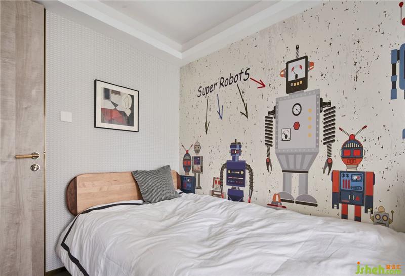 孩童總是對世界充滿著無限的好奇與想象。男孩房在主色調(diào)的基礎(chǔ)上增添了不同維度的淺藍(lán)色用以裝飾,用色彩傳遞情感,充滿未知與想象力。