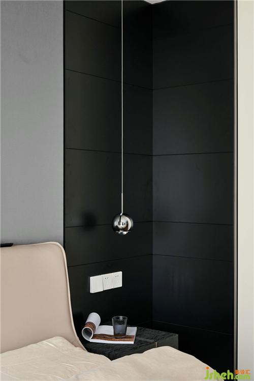 設(shè)計(jì)師把次臥打造成一個(gè)相對中性的空間,深色的硬裝搭配暖色的軟裝,沉穩(wěn)而又大方。