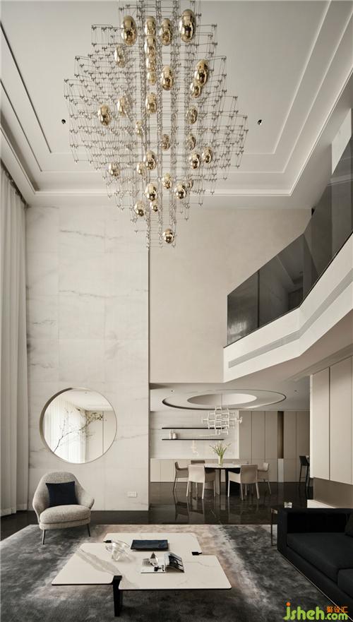 客廳小到擺件、抱枕,大到沙發(fā)、吊燈,無不給人一種奢華高貴國際范兒的感覺,設(shè)計師采用米蘭的現(xiàn)代極簡風(fēng)格,極簡精致而簡約,同時透露著濃重的設(shè)計感。白色大理石也給這高貴的空間加上濃厚的一筆韻味。