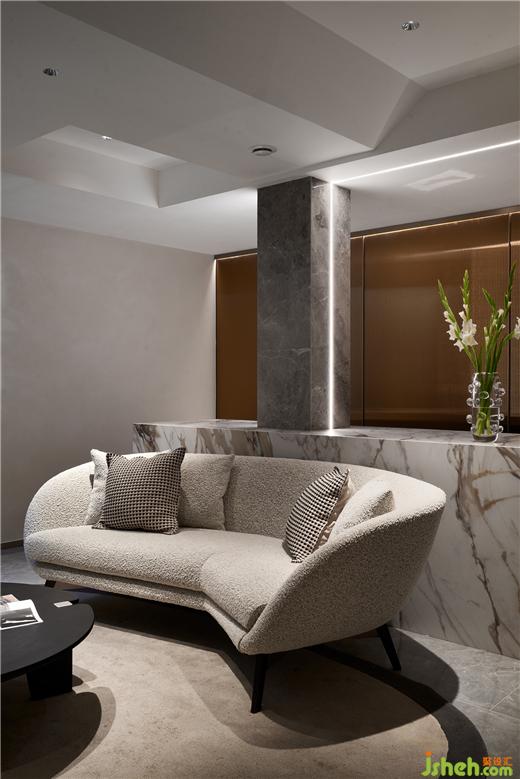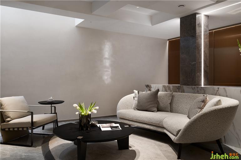 集觀影、休閑為一體,低調(diào)的白色布藝沙發(fā)中和著石材的硬度,別墅設計在線性光線的把控下,地下室多功能區(qū)呈現(xiàn)出包容與溫和的態(tài)度。