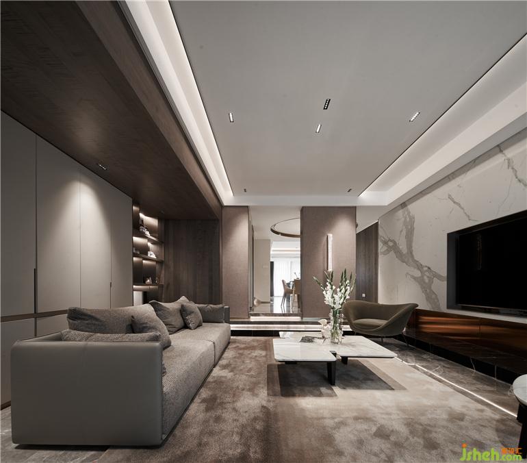 別墅設(shè)計以深咖色木飾面與白色大理石為背景搭建生活舞臺:統(tǒng)一的對話、均勻和諧的色調(diào)與材質(zhì),規(guī)整中藏著不規(guī)則的驚喜。彰顯內(nèi)斂沉穩(wěn)的品格,更反映了屋主對生活品質(zhì)的高級訴求。