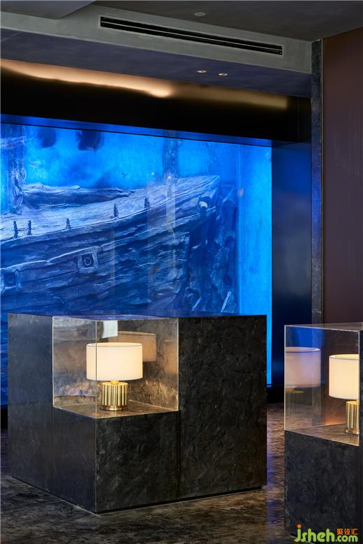 最驚艷的是這一整面湛藍的巨幕海洋墻。熱帶魚洄游其中,隱藏著亞特蘭蒂斯失落的空間,瞬間從綠野仙蹤穿越到海底夢境中。