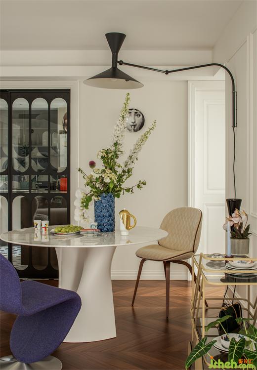 定制的移門(mén)拉開(kāi)廚房的序幕。法式新家中,每一個(gè)生活的轉(zhuǎn)角都經(jīng)過(guò)了精心考慮。為了更好地融入整體氛圍,上海公寓改造設(shè)計(jì)師親自畫(huà)稿,定制了廚房法式黑框圓弧玻璃移門(mén),復(fù)古而優(yōu)雅,開(kāi)合之間不僅是門(mén)的意義,更是空間風(fēng)格的點(diǎn)綴。