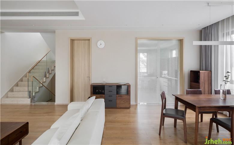 本案的材質(zhì)一般選擇兩到三種主材,以木材、石材、玻璃及瓷磚為主流,常以通鋪的形式出現(xiàn),一體式的鋪裝效果有助于視覺的連貫性,令空間更具有整體感。