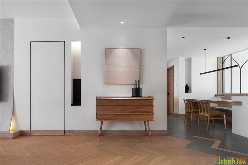 眾所周知侘寂是日本美學(xué)的一個(gè)組成部分,舟山室內(nèi)設(shè)計(jì)師本案也略用侘形來(lái)制造空間的樸素與安靜。