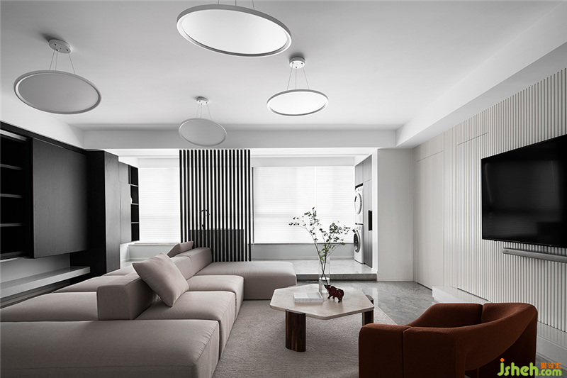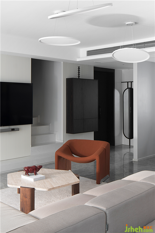 在布置方案中,設(shè)計(jì)師首先就要解決的是采光和空氣流通性。讓光線、氣流成為居住者與空間最好的連結(jié),同時(shí)擯棄了繁復(fù)的墻面造型,選擇通過材質(zhì)的對比運(yùn)用豐富空間層次。