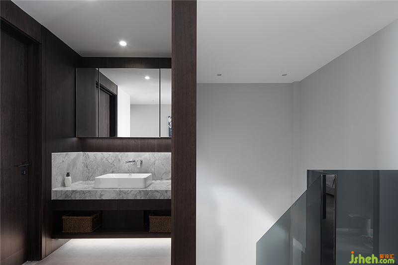 拾級(jí)而上的二層私人空間,將干區(qū)納入過(guò)道,鏡柜的使用不僅增加收納區(qū)舟山別墅裝,也在視覺(jué)上豐富了空間的層次。