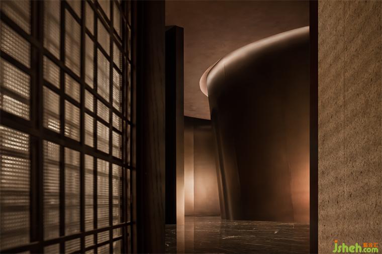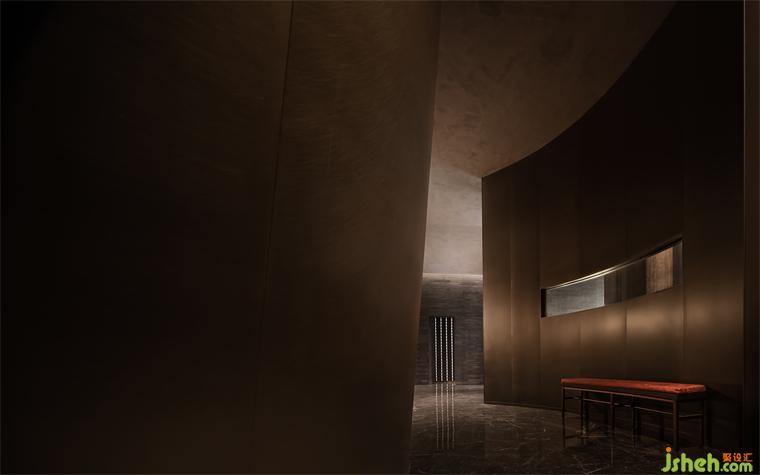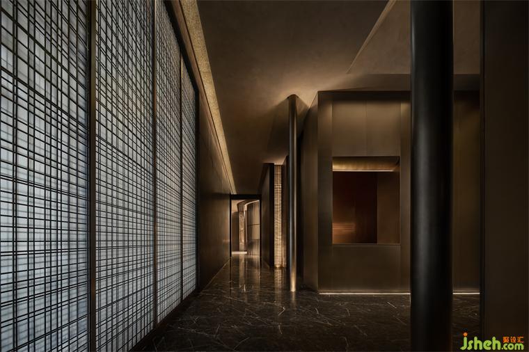 The gentle yellow light spills through the grating, akin to a warm and serene sunset, casting a soft glow into the external space. The carefully crafted semi-open area, adorned with meticulously designed visual points at every turn, invites wanderers to discover a sense of belonging within the poetic and artistic ambiance woven into the intricate details.