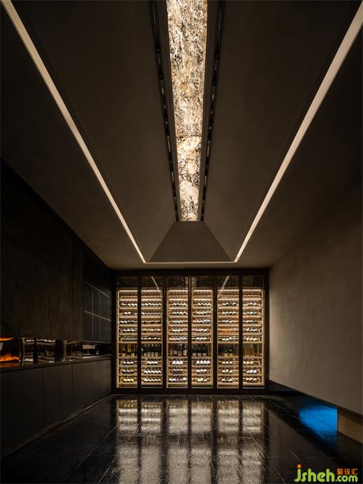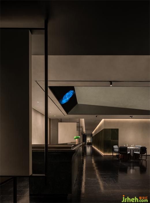 墨綠藝術(shù)墻為框架,晶瑩的玻璃磚為內(nèi)容,既是屏風(fēng),亦是入口。餐廳設(shè)計(jì)沉穩(wěn)的色彩與通透的光影虛實(shí)相依,讓雅致的內(nèi)部空間若隱若現(xiàn),耐人尋味。