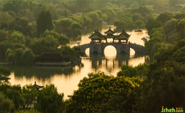 這氣韻也存在于其園林風(fēng)貌中,一如集石、林、塔、橋,幽、夢、靜、雅于一體的瘦西湖,園中有園,景中透景,造就“兩岸花柳全依水,一路樓臺直到山”的境界。