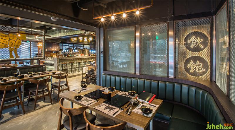 開放式設(shè)計(jì)打造主用餐區(qū),利用卡座固定部分座位,再搭配可移動(dòng)座位,整體達(dá)到高效靈活??臻g中吊燈和家具的選擇均采用質(zhì)樸的金屬、鋅水管、木材和皮革定制,近天花處圍合一圈玻璃磚,在燈光的照射下發(fā)出迷離的光環(huán),融合實(shí)際的工業(yè)氛圍更貼合顧客需求,讓用餐成為享受。餐廳設(shè)計(jì)
