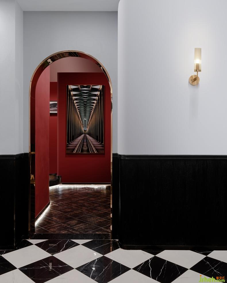 紅色的墻體裝飾,使整個空間變得更為熱情和活力,為整個空間添加了更多的想象力,同時使不同的空間表示形成統(tǒng)一的整體。具有強烈的舞臺感。像火焰般燃起了整片空間。