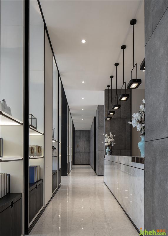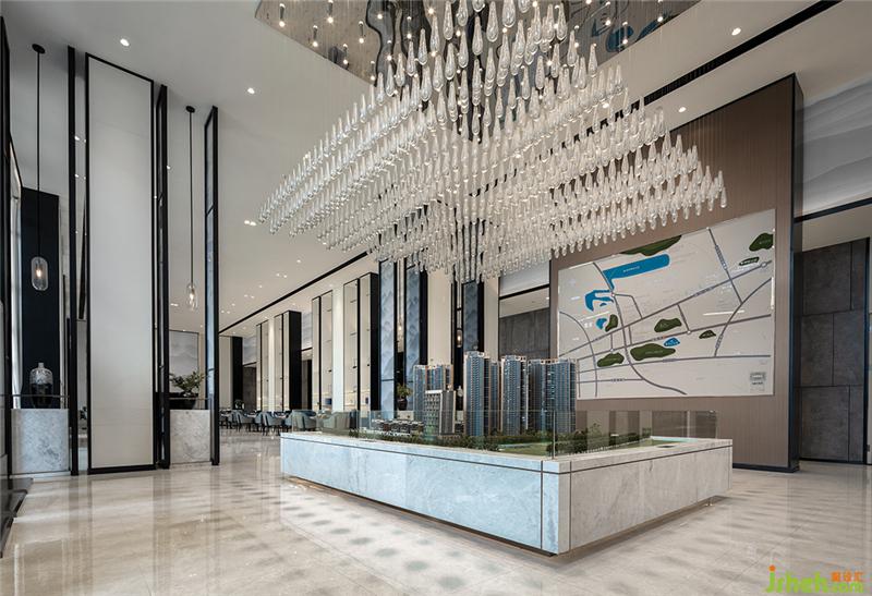 在沙盤(pán)展示區(qū)的上空,清光透亮的水滴型藝術(shù)玻璃吊飾燈,與貫穿整個(gè)空間的山巒水墨畫(huà)相互映襯,宛若一場(chǎng)酣暢淋漓的山雨,洗盡浮世鉛華,滌蕩心靈塵垢。駐足于此,浮想雨后的山林,樹(shù)葉蒼翠無(wú)比,綠草鮮嫩欲滴,漫山素白的玉蘭花,像圣潔的精靈,經(jīng)過(guò)山雨的洗禮,變得更加瑩潔高雅,空氣中夾雜著泥土和花草的清香,心情亦變得舒暢開(kāi)來(lái)……裝修設(shè)計(jì)