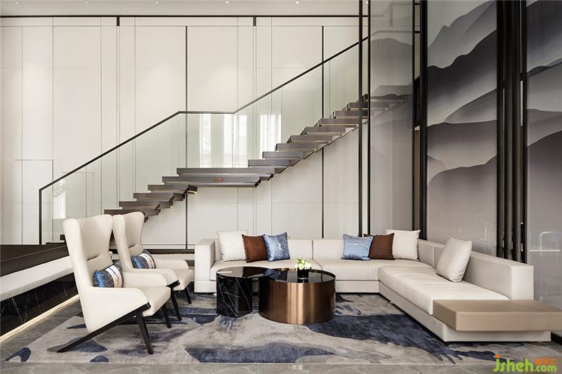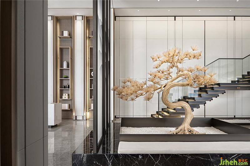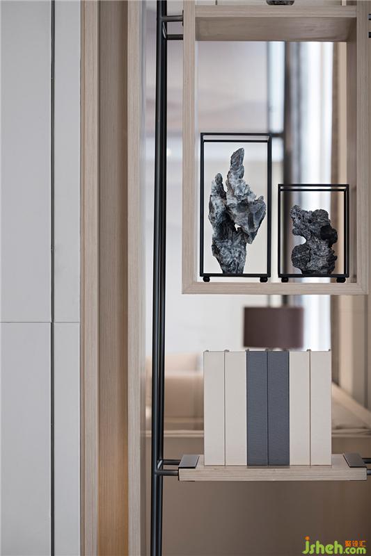 在VIP洽談區(qū),圍合式山水屏風(fēng)造景區(qū)和樓梯下的造景區(qū),同樣采用了枯山水的造景手法,以近于「空無」的枯淡靜寂,呼應(yīng)室外風(fēng)景,給室內(nèi)增添一絲詩意的趣味。會(huì)所設(shè)計(jì)