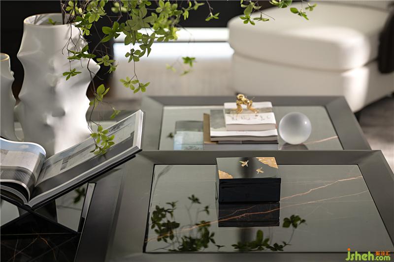 與一層接待臺相呼應(yīng),二層水吧臺同樣運用了天然的原石材質(zhì),粗狂的石材與空間的白色基調(diào)及精致細(xì)膩的珠寶元素形成強(qiáng)烈對比,增加了空間豐富的層次和內(nèi)涵。吧臺上綠植的點綴,讓整個空間更加的靈動和諧。