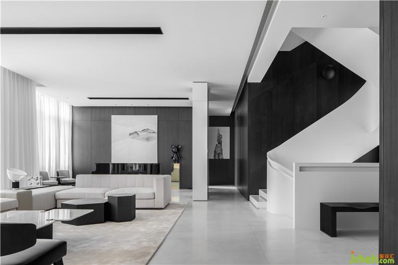寬敞舒適的客廳設(shè)計(jì),搭配意大利簡約家具,黑白灰的極簡設(shè)計(jì)呈現(xiàn)出非凡的氣質(zhì),純粹的藝術(shù)光感隱隱約約中傳達(dá)出美好的情境,靜然優(yōu)雅中富有變化,似有若無的韻律給人以無限遐想。