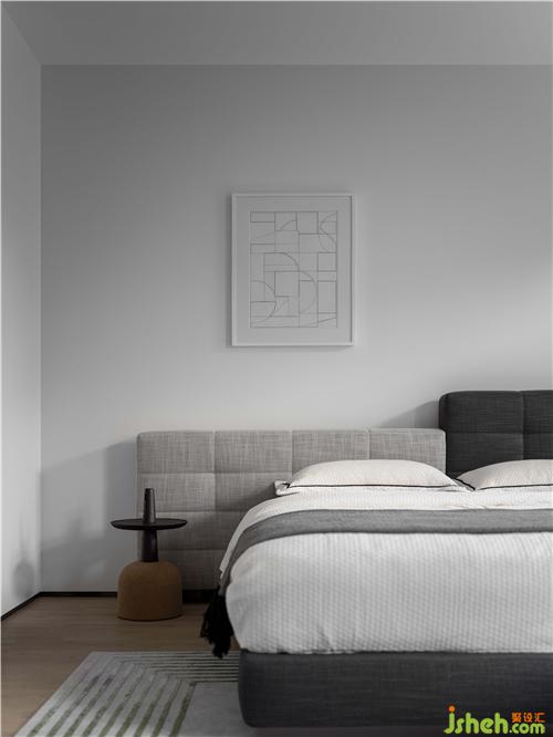 在所有的裝飾盡可能去除,回歸到身體的觸覺感知,柔軟的地毯和布藝床,讓睡前時(shí)光更加愜意放松。